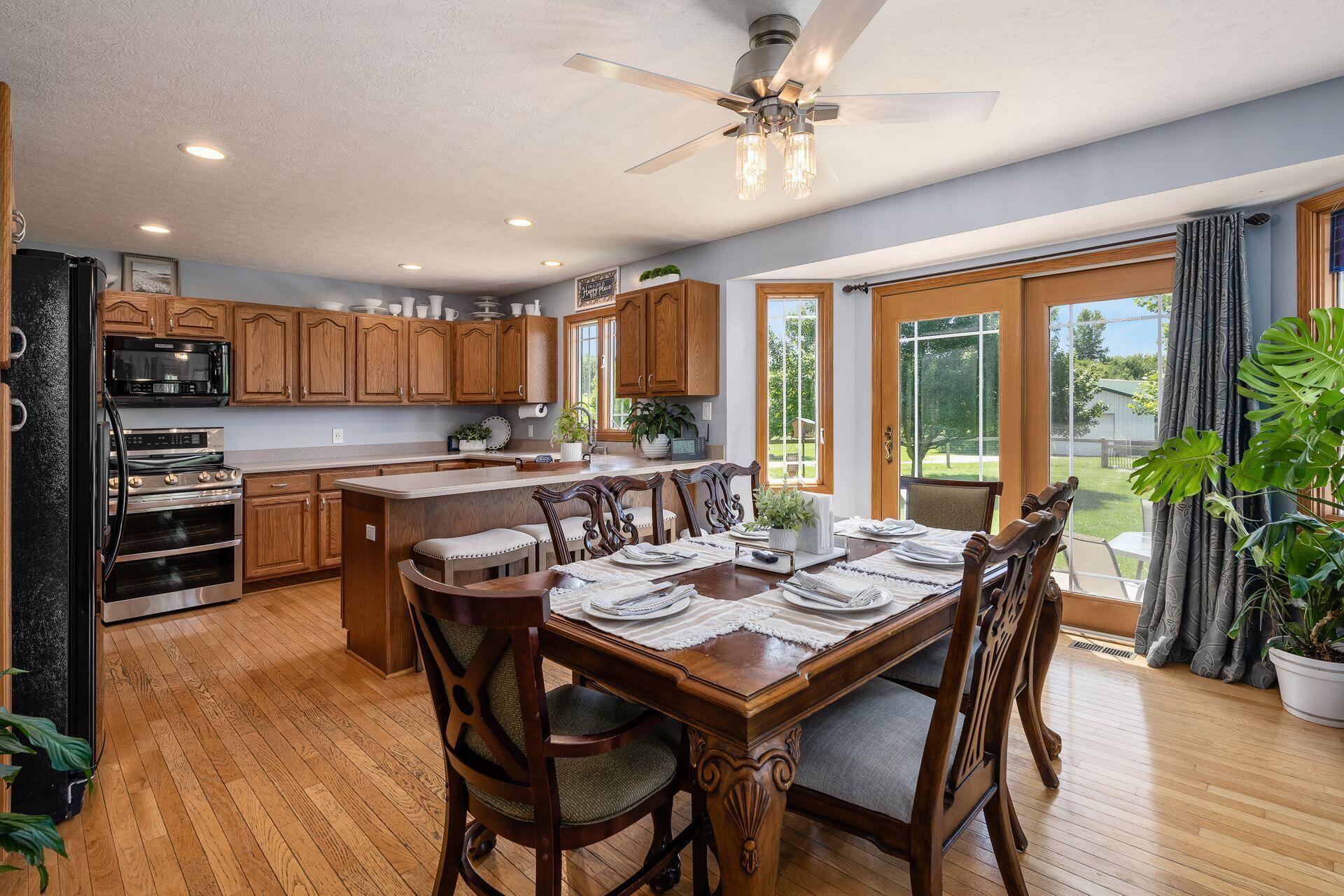 Charming Sunbury home, set on over 5 acres of picturesque land. This 4-bed, 2.5-bath residence features a first-floor primary suite and an open-concept floor plan. The spacious kitchen and wood floors add to the home's appeal, with new carpet and paint throughout much of the home enhancing its fresh look. 2-car attached garage and a pole barn capable of holding 4 cars or equipment. Pole barn is 38x38 with a 100 amp service. Outdoor living is a delight with a patio, fenced yard, and mature landscaping. Spacious bedrooms and abundant natural light complete this perfect retreat. Embrace the blend of comfort and country living in this exceptional property! DelCo Water! Roof is one year old. All that is left to do is move right in! Welcome Home! Interior pictures coming Friday!